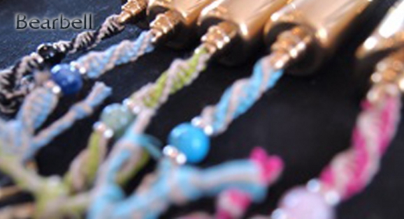 紐と同色の天然石が付いたおしゃれな熊鈴です。