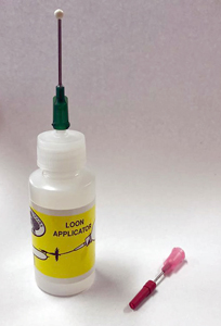 通常のアプリケータージャーはニードルに付いたヘッドセメントを、ビンの口で適量をぬぐってからフライのヘッド部に滴下する必要がありました。しかし、このTMCアプリケータージャーはニードルを片手で引き抜く時点で、適量のヘッドセメントがニードルの先端に付くように設計されているのです。もちろん、使ったあとは、そのままニードルを本体に差し込んでフタをするだけ。タイイング時のちょっとしたわずらわしさを解消した優れモノ。TMCが考えた理想のアプリケータージャーです。 |